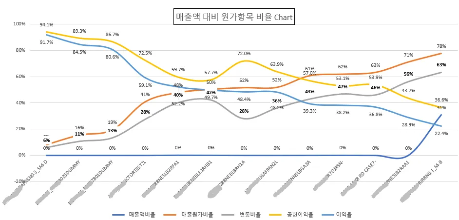 **제품별 원가항목 비율