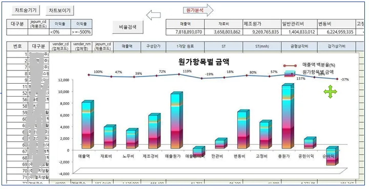 거래처별, 품목별 원가와 이익율을 파악하고 계십니까?
